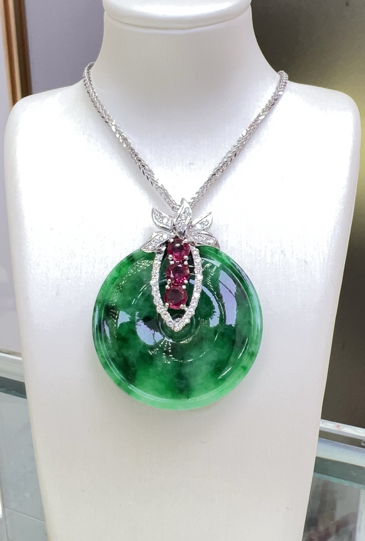18K天然翡翠鑽石吊墜