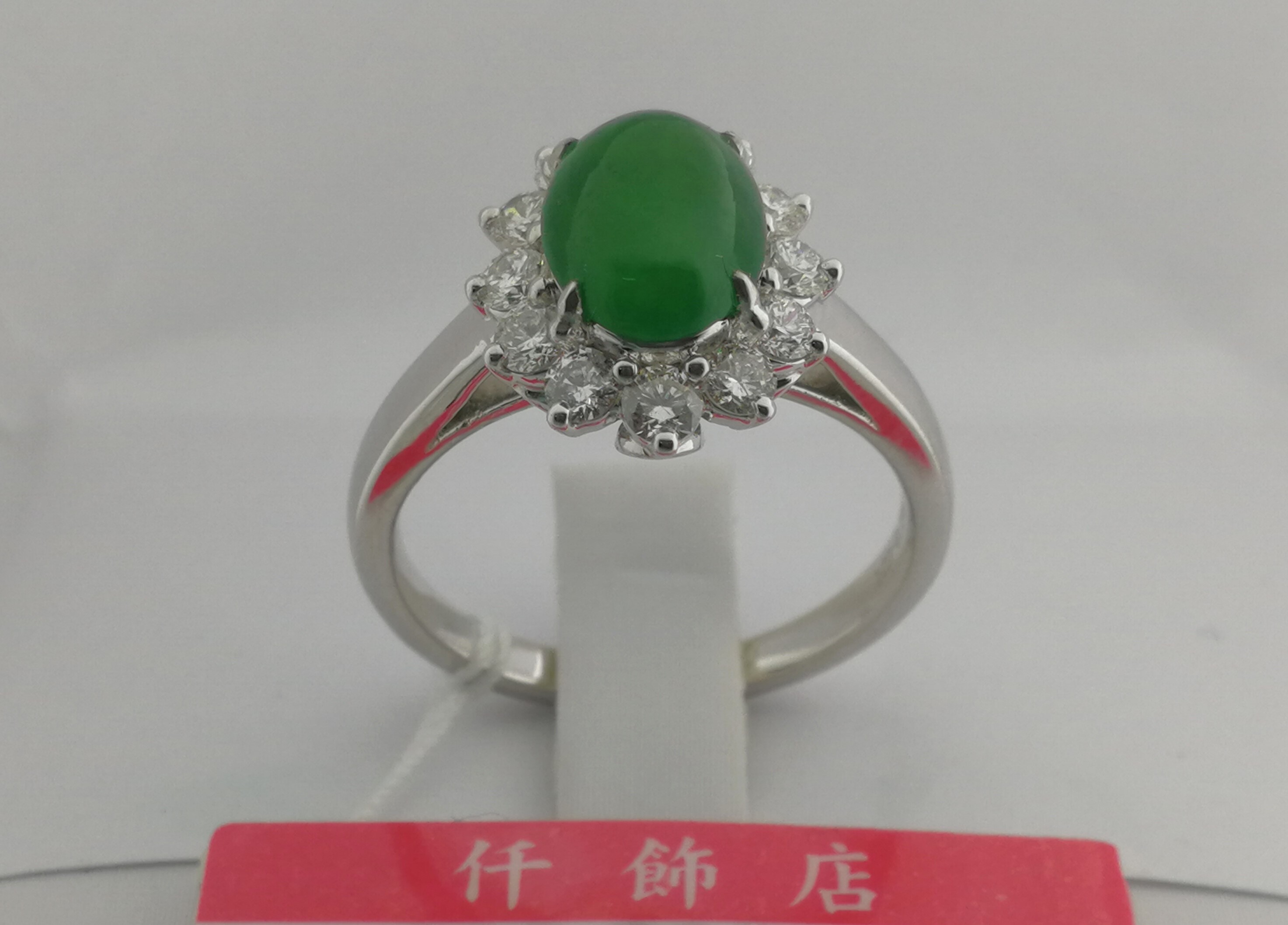 18K天然翡翠鑽石戒指