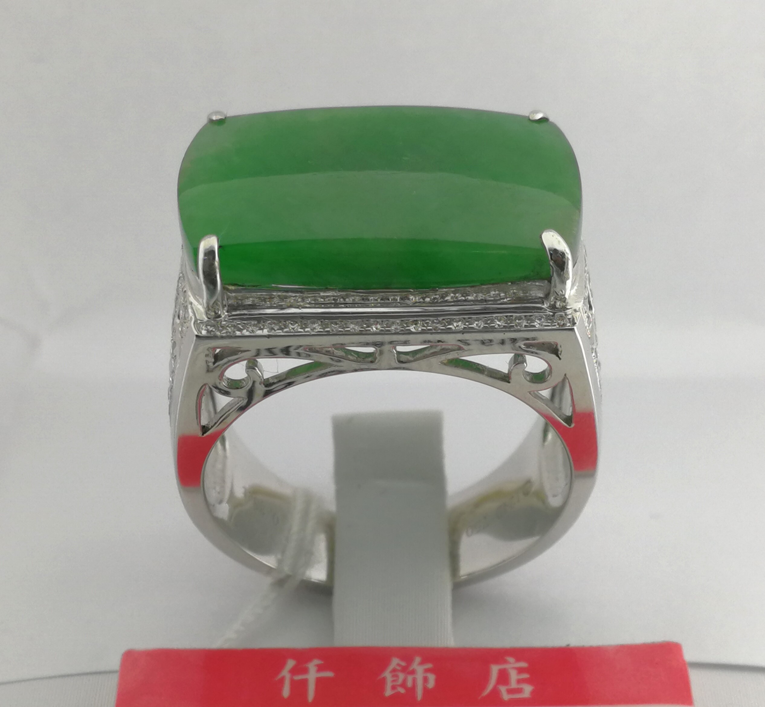 18K天然翡翠鑽石男戒