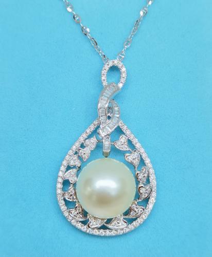 18K白金鑽石珍珠吊墜托 104D-0.80ct 25DT-0.22ct W1.72錢